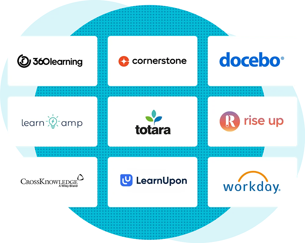 Get your courses where they need to be – fast. Explore Elucidat’s integrations, including PowerPoint, LMS platforms, stock media libraries, and more.