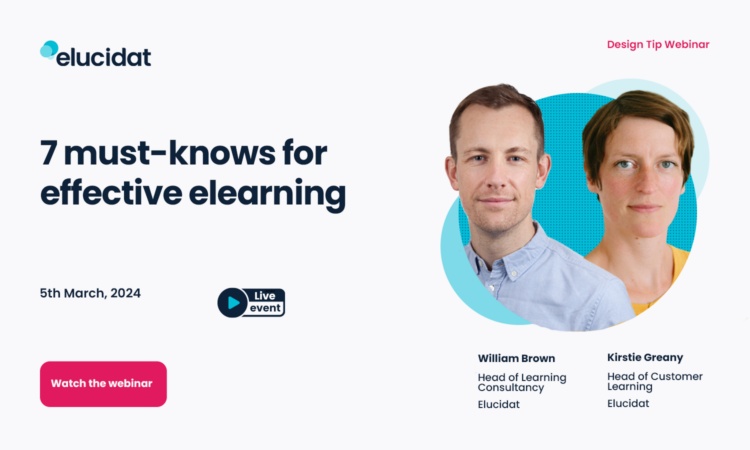 What does it take to create effective elearning that engages, versus online content that falls flat? Below, we distill seven crucial ingredients from a recent webinar with Elucidat experts Will Brown and Kirstie Greany. Use them to create elearning experiences that resonate and drive meaningful change. Watch the webinar to explore these insights in more depth.